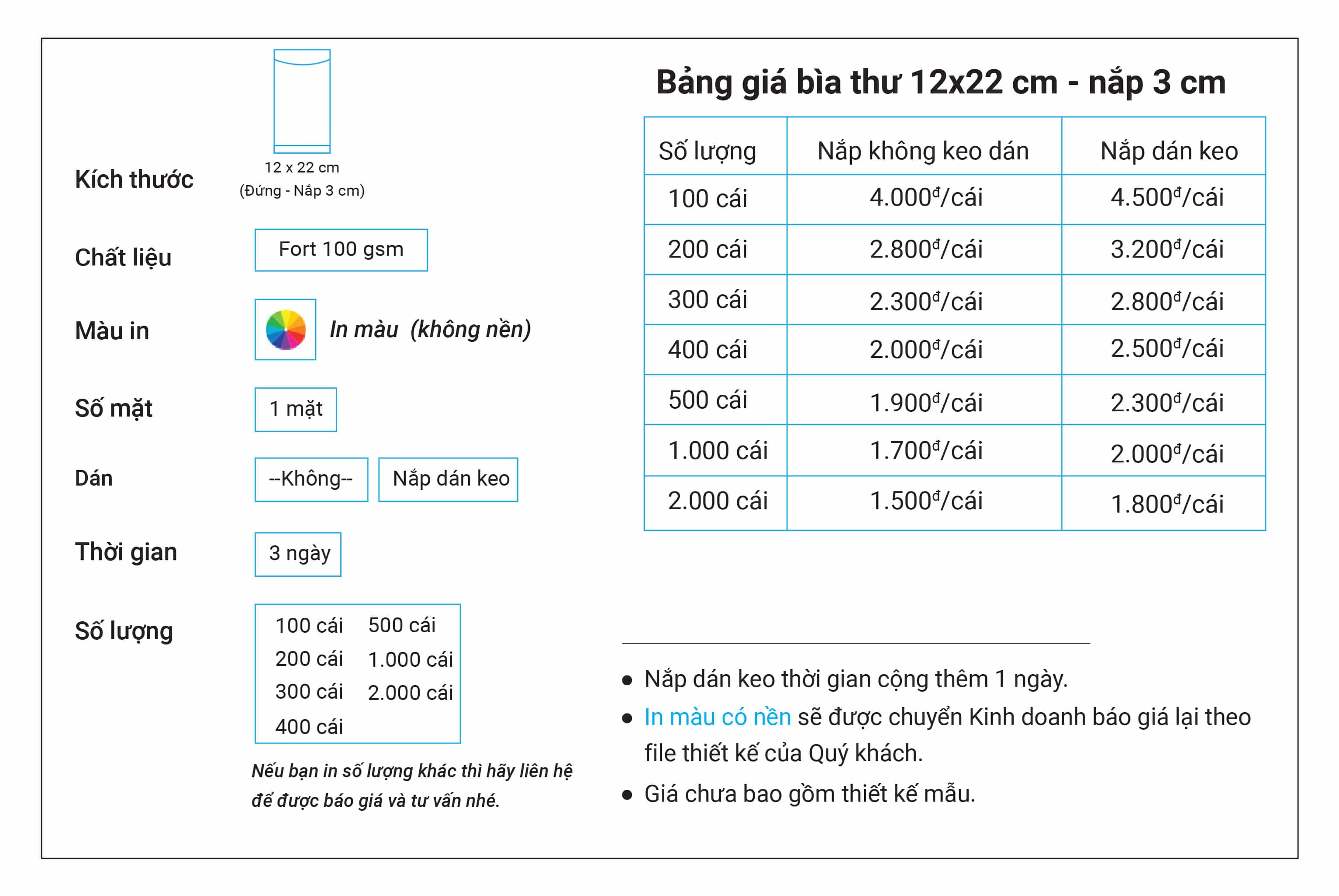 Dịch vụ in bìa thư 22 X 12 - F100 - Nắp 3 giá rẻ