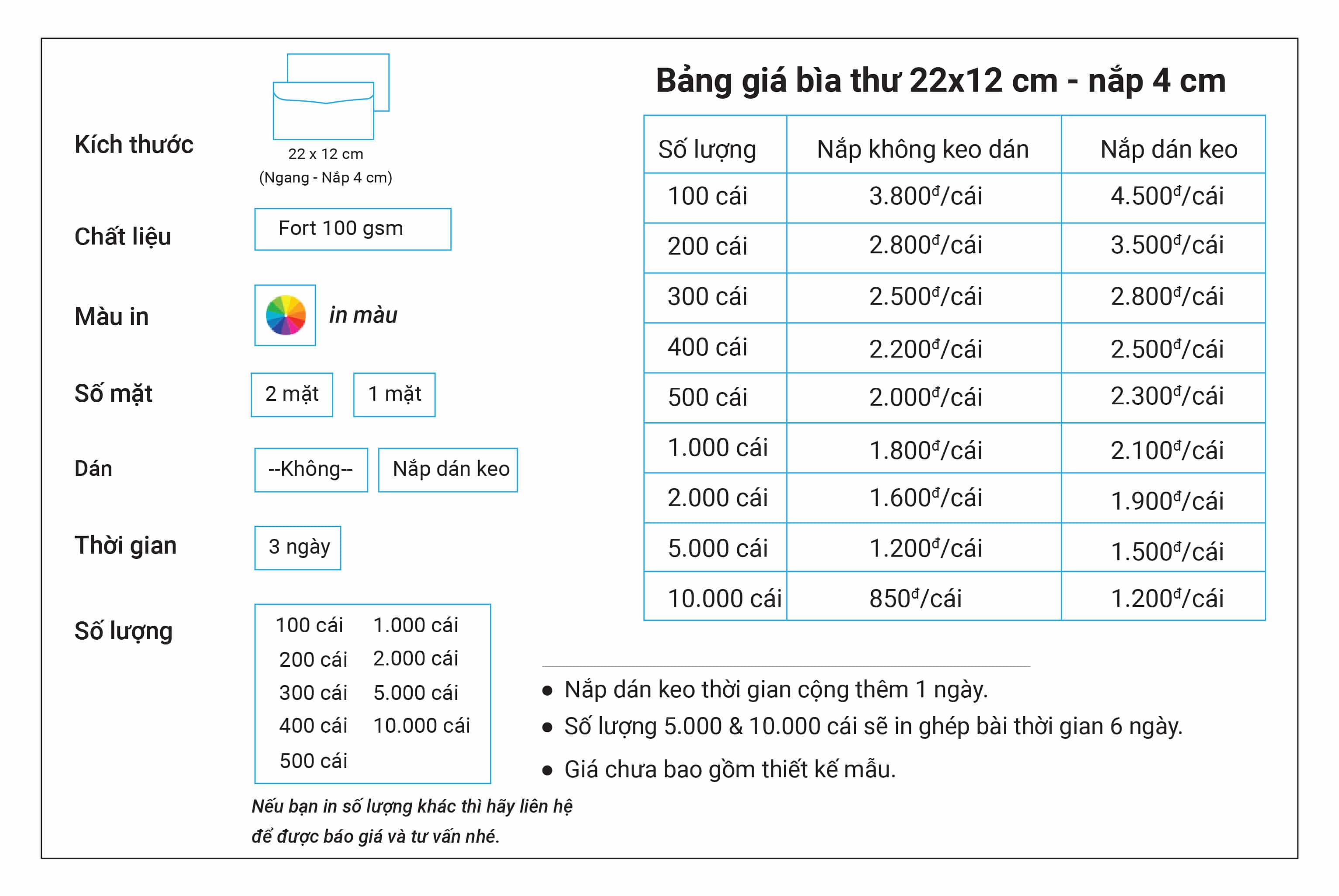 Dịch vụ in bìa thư 22 X 12 - F115 - NẮP 4 giá rẻ