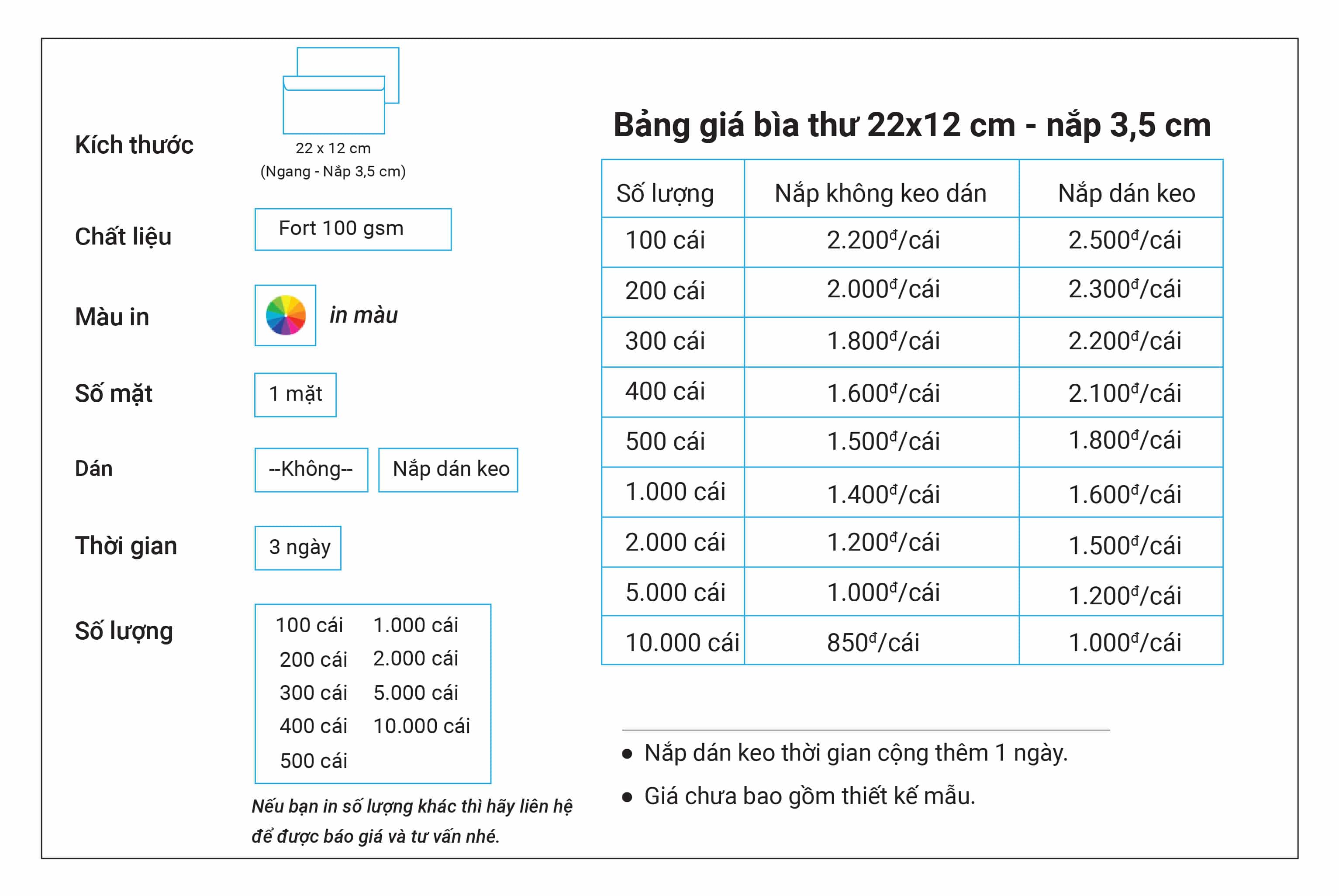 Dịch vụ in bìa thư 22 X 12 - F100 - NẮP 3.5 giá rẻ