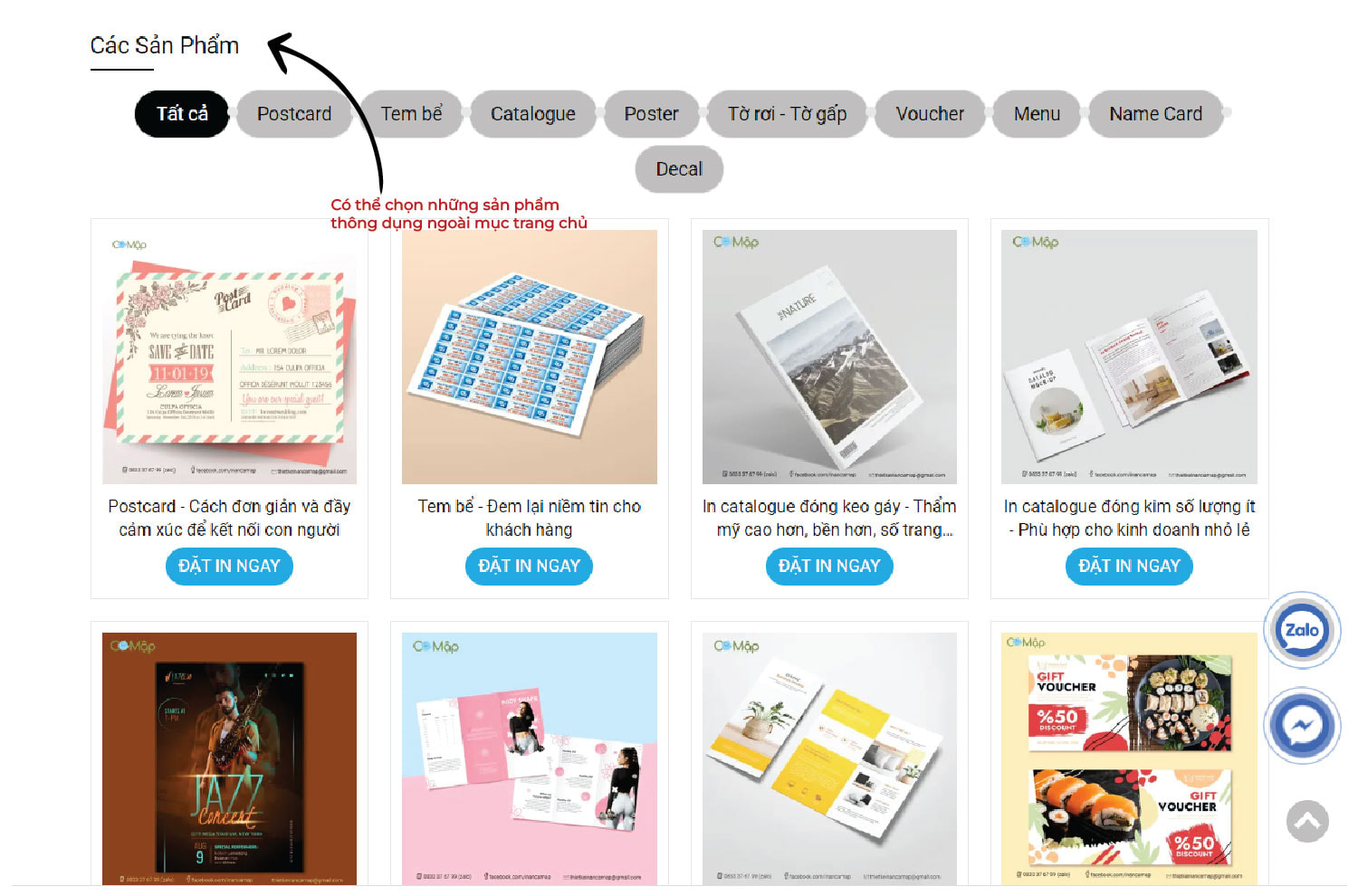 Tại phần này cũng sẽ có các sản phẩm in ấn người dùng hay in.