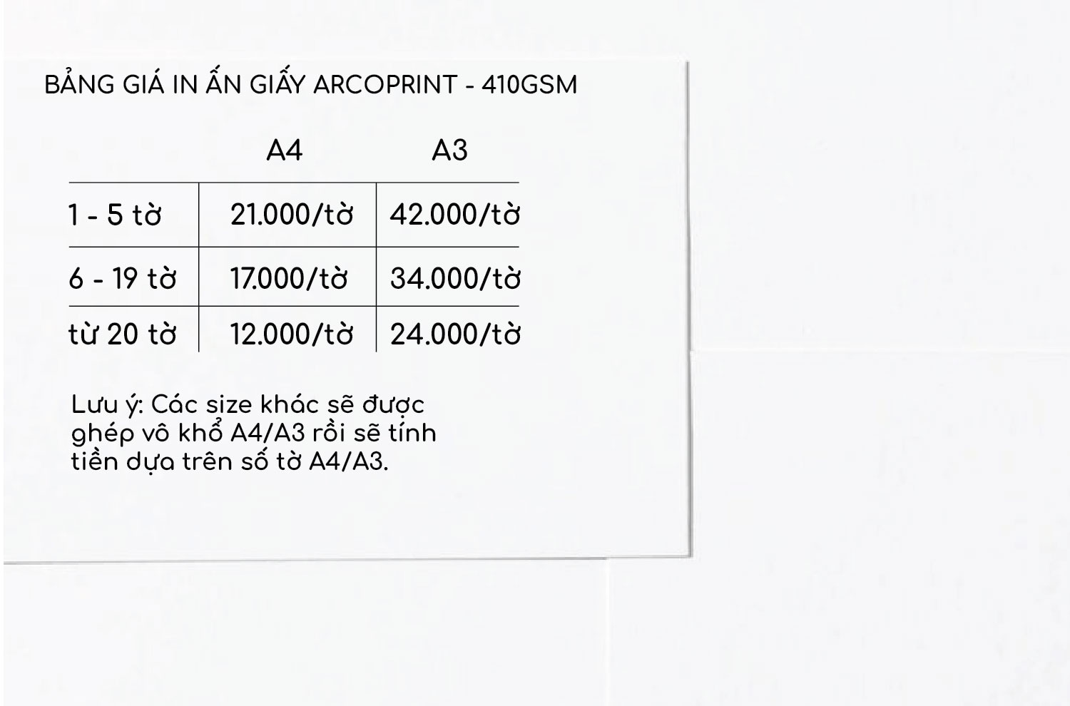 BẢNG GIÁ IN GIẤY MỸ THUẬT ARICOPRINT