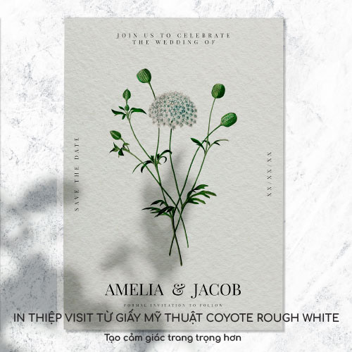 - In thiệp và thiệp chúc mừng: Với tính thẩm mỹ cao và bề mặt độc đáo, giấy Coyote rough white là lựa chọn tốt cho in thiệp và thiệp chúc mừng độc đáo và ấn tượng.