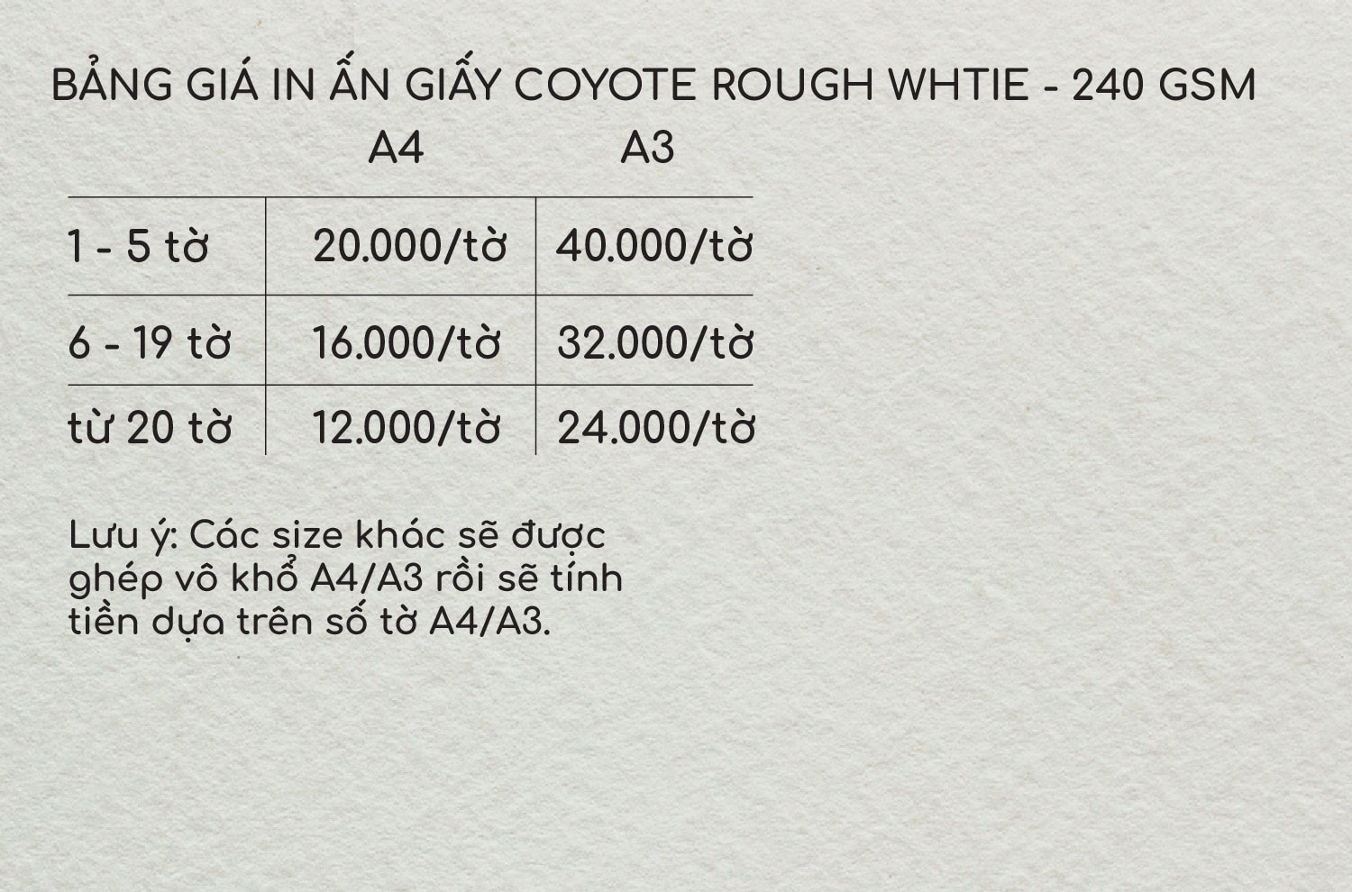 BẢNG GIÁ IN GIẤY MỸ THUẬT COYOTE ROUGH WHITE