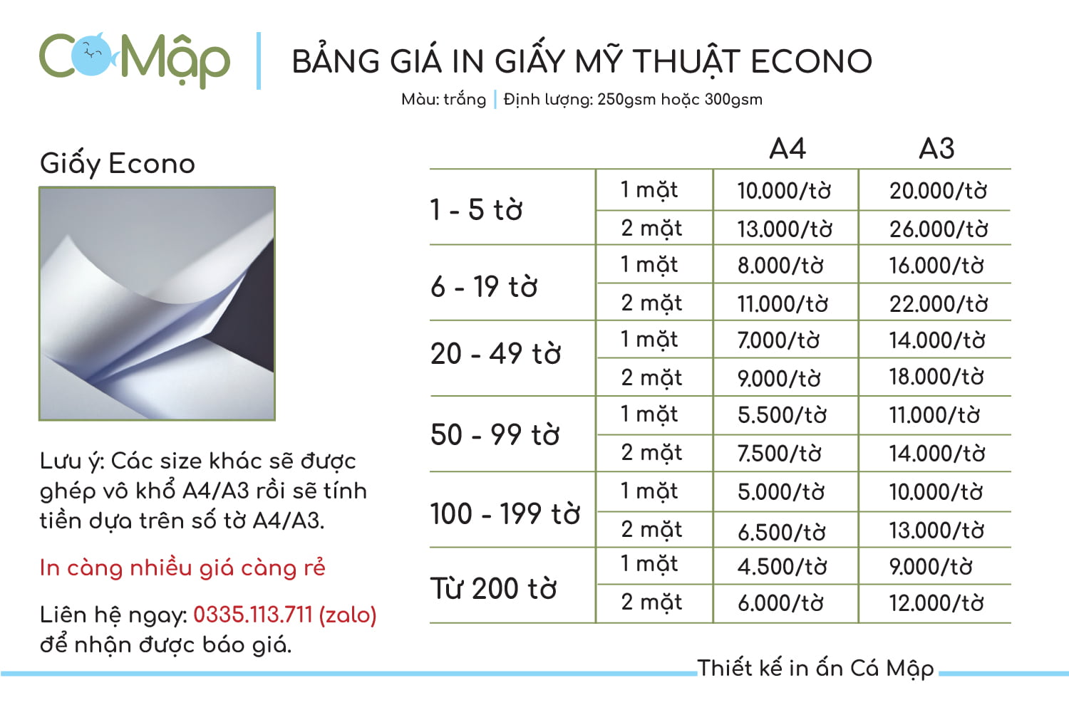 • In giấy mỹ thuật econo nhanh, chuyên nghiệp.