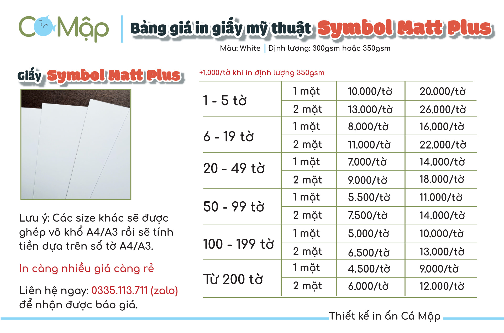• In giấy mỹ thuật symbol matt plus nhanh, chuyên nghiệp.