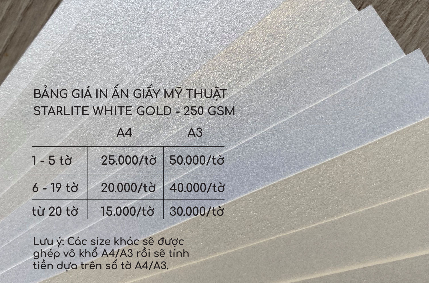 BẢNG GIÁ IN GIẤY MỸ THUẬT STARLITE