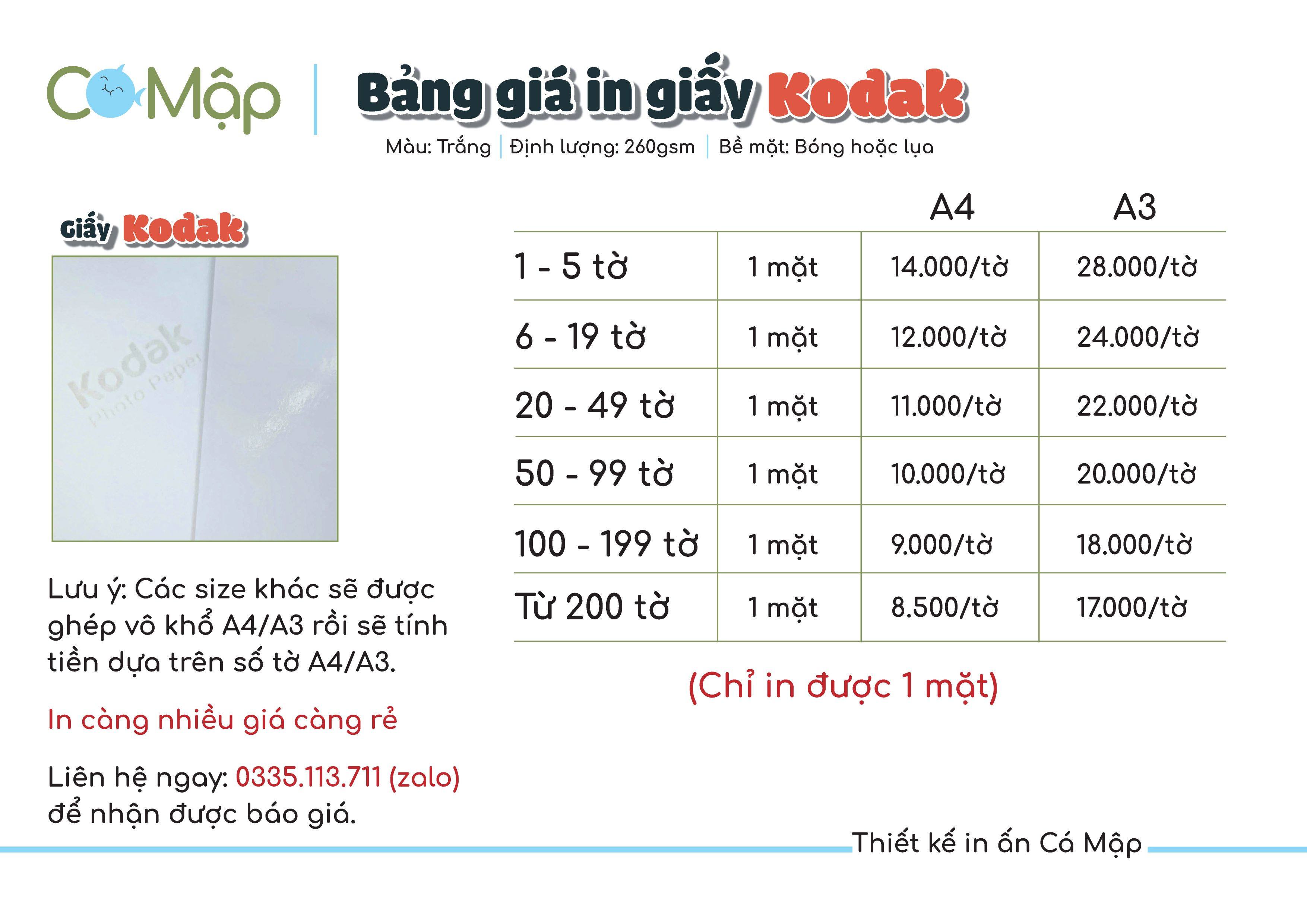 - Xem bảng giá in Kodak Lụa và Kodak Bóng theo khổ/số lượng