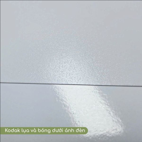 Kodak Lụa ít phản sáng, nhìn sang và dịu mắt; Kodak Bóng màu rực, nổi bật nhưng dễ phản sáng hơn.