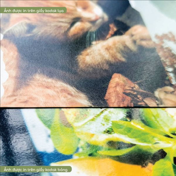 - Kodak Bóng: bề mặt bóng rõ, màu thường rực và nổi bật, tạo hiệu ứng “wow” nhanh → hợp ảnh cần nổi bật màu sắc, phong cảnh rực, ảnh sản phẩm.