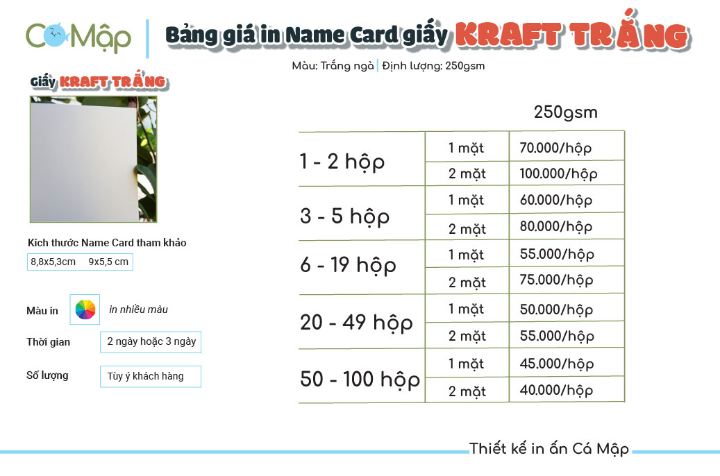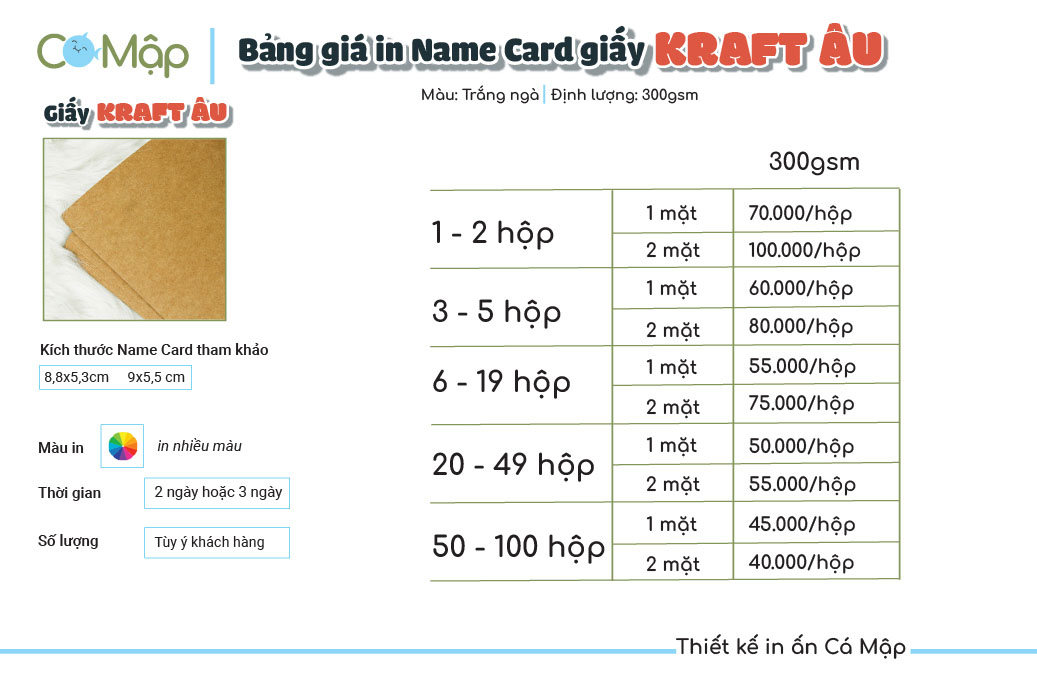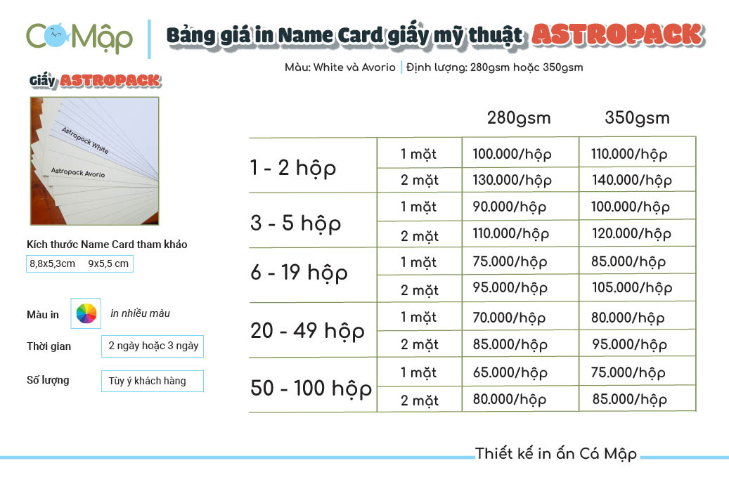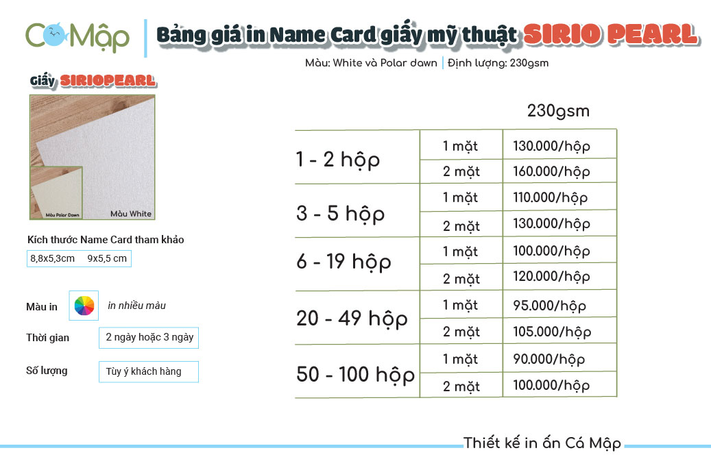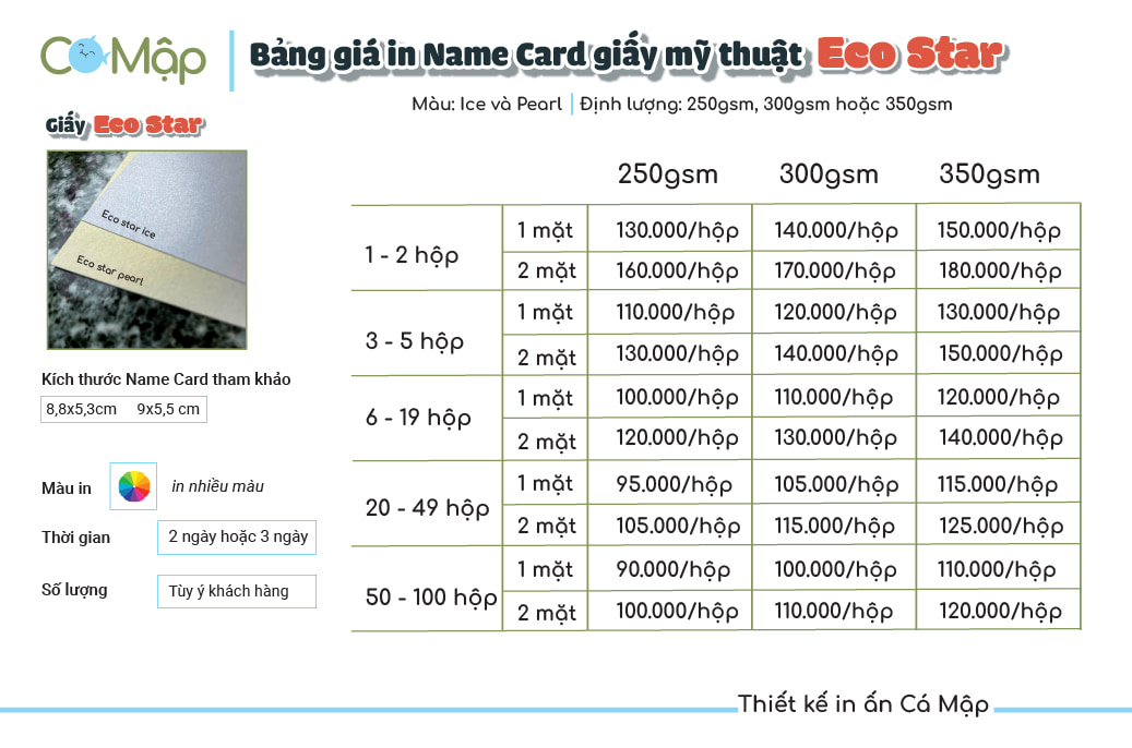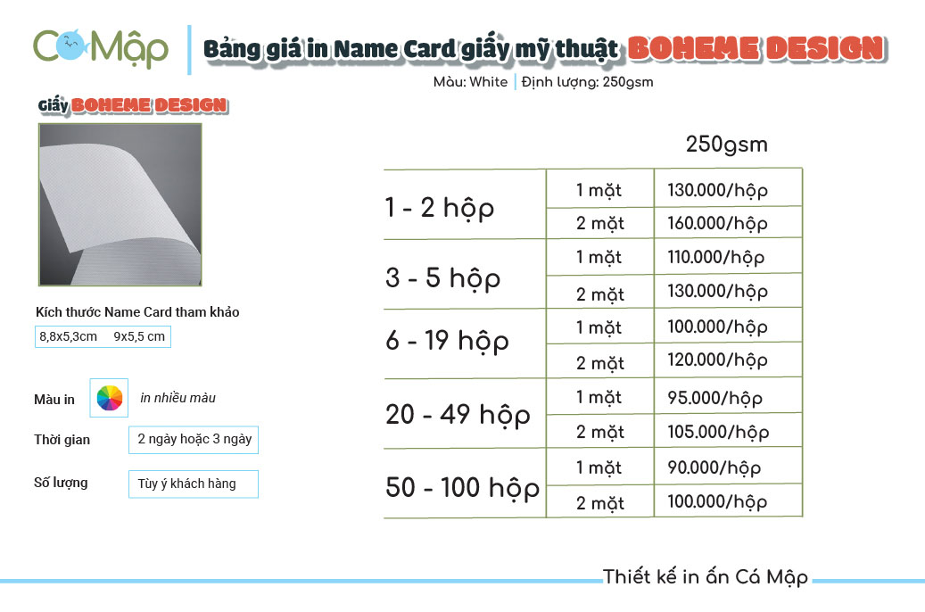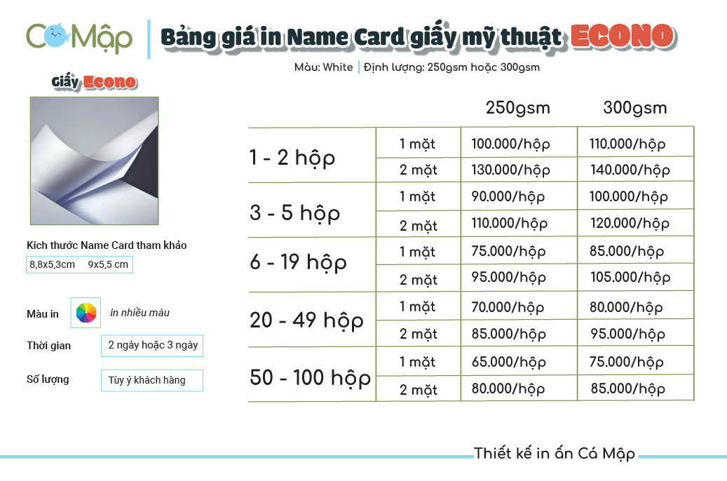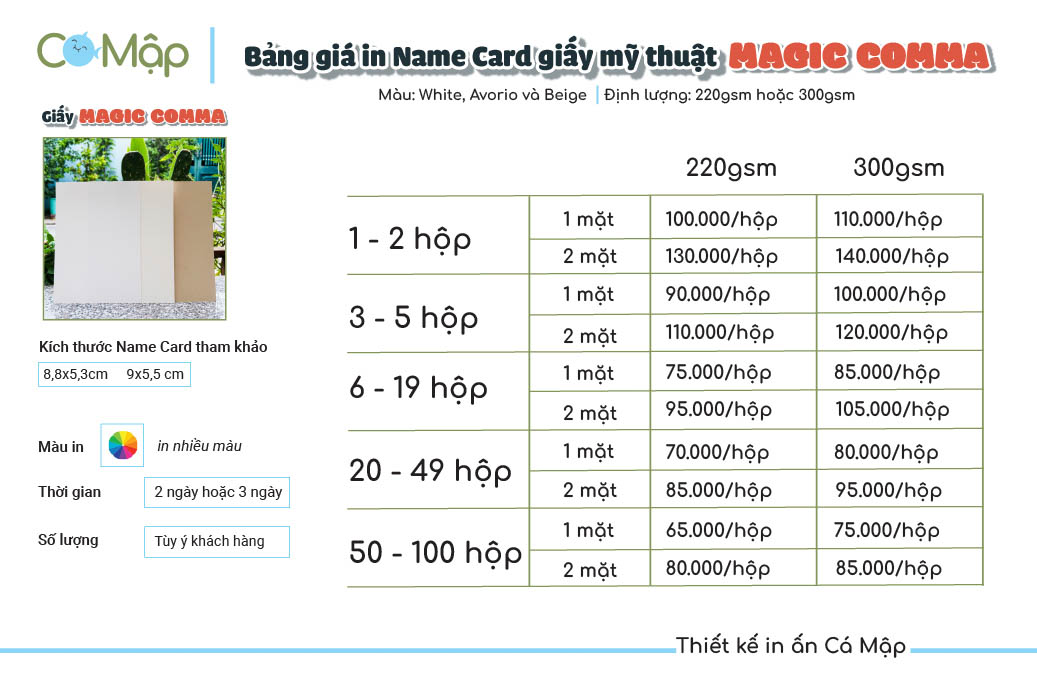 BẢNG GIÁ IN NAME CARD GIẤY MỸ THUẬT