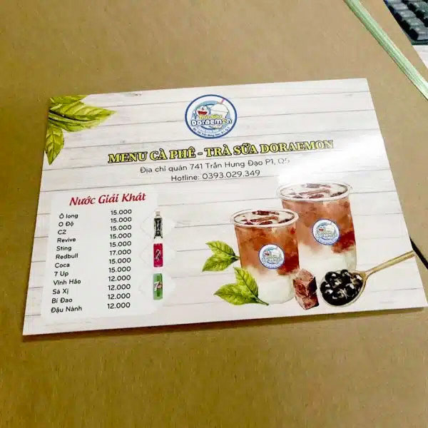 - Menu formex dán decal: Đây là loại menu phổ biến nhất, với giá thành hợp lý và chất lượng tốt.