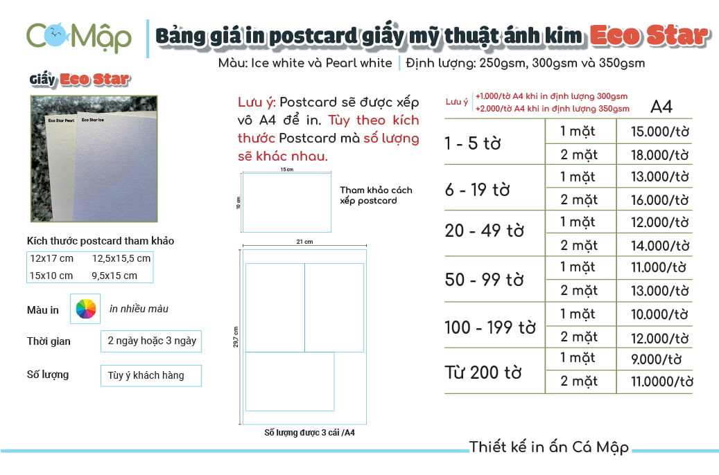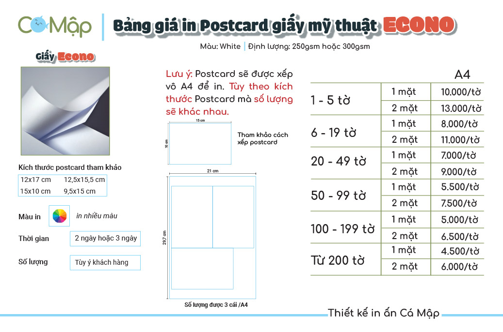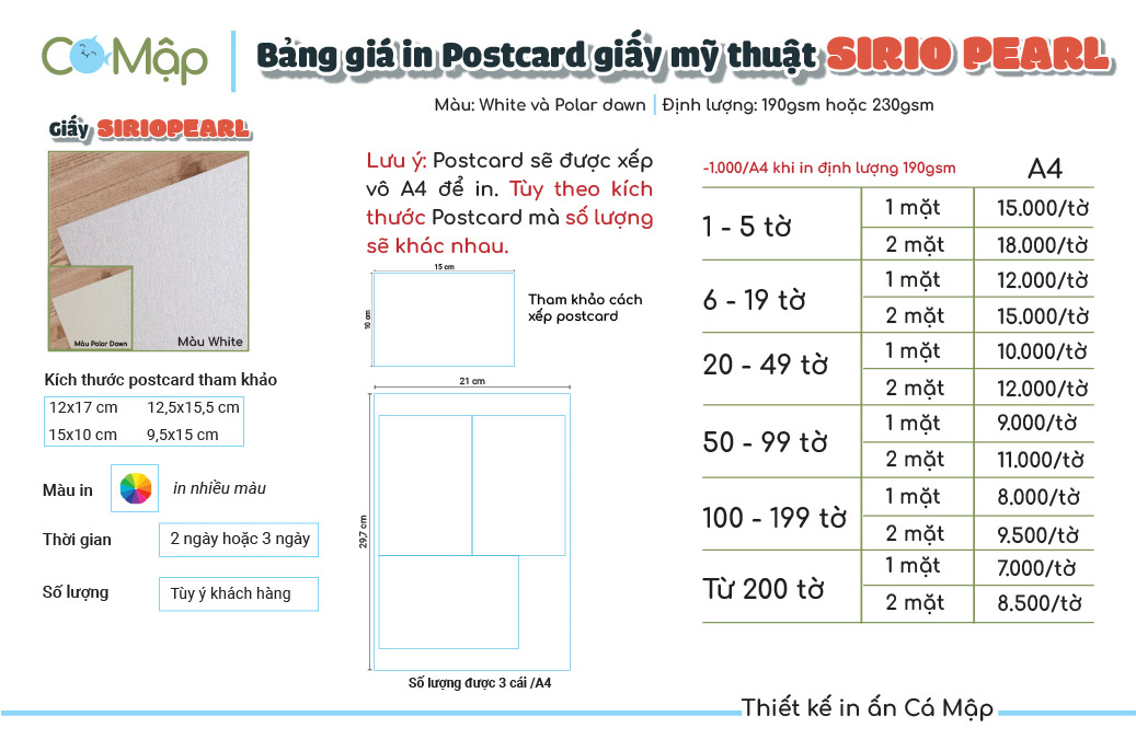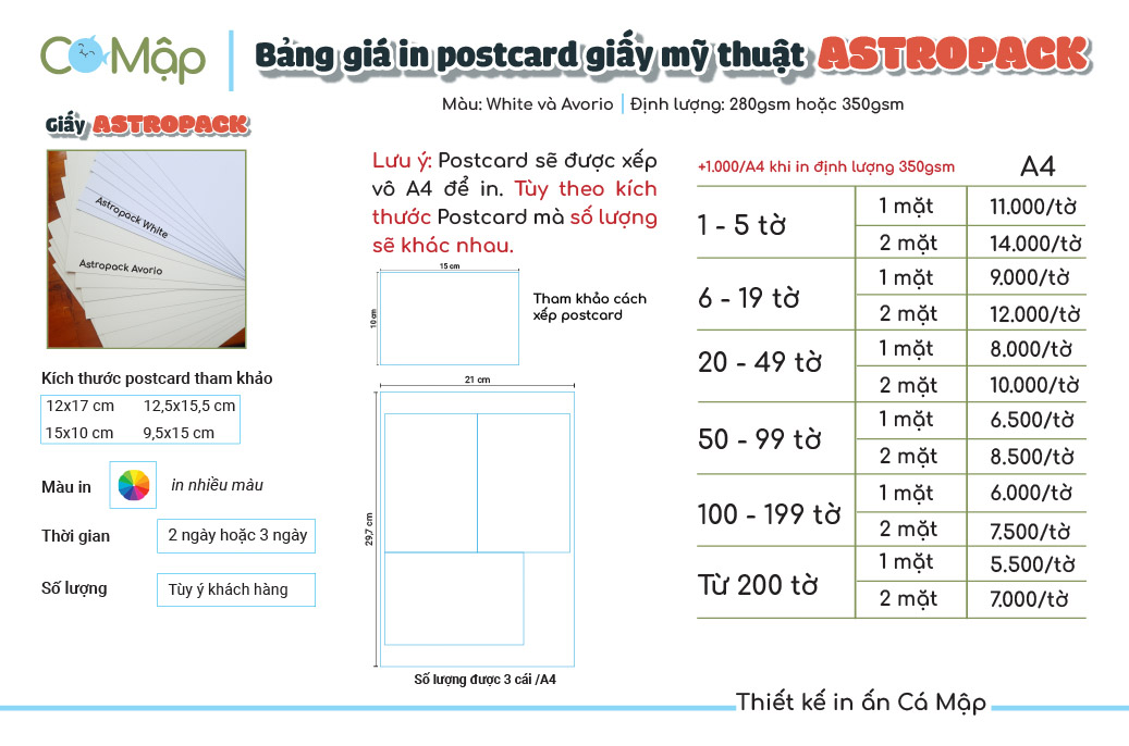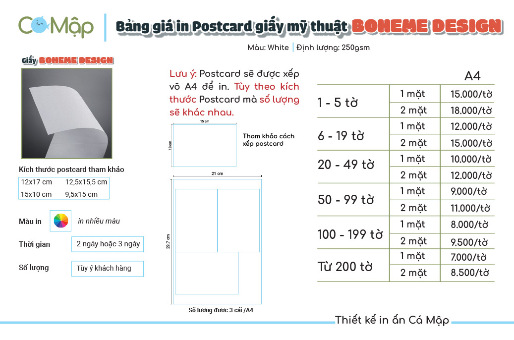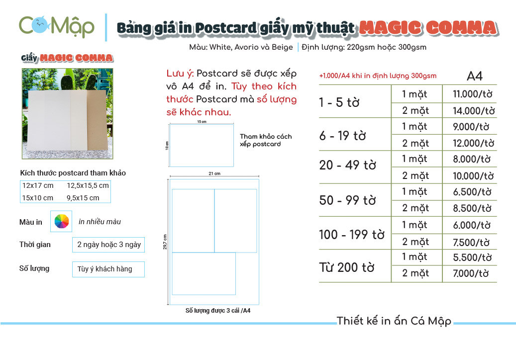 Bảng giá in postcard trên các loại giấy mỹ thuật