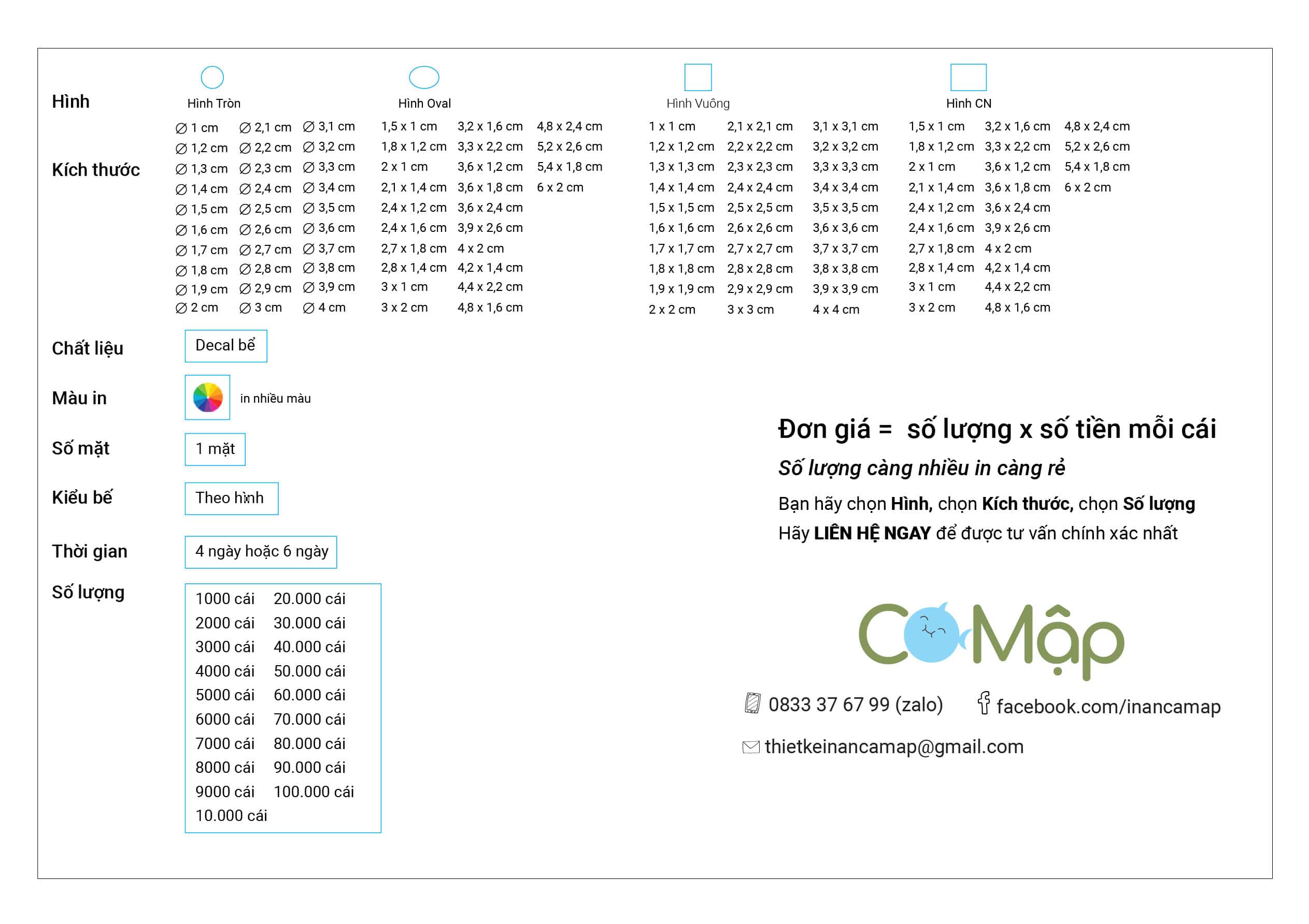 • Hỗ trợ các thiết kế và tư vấn in tem bể theo yêu cầu.