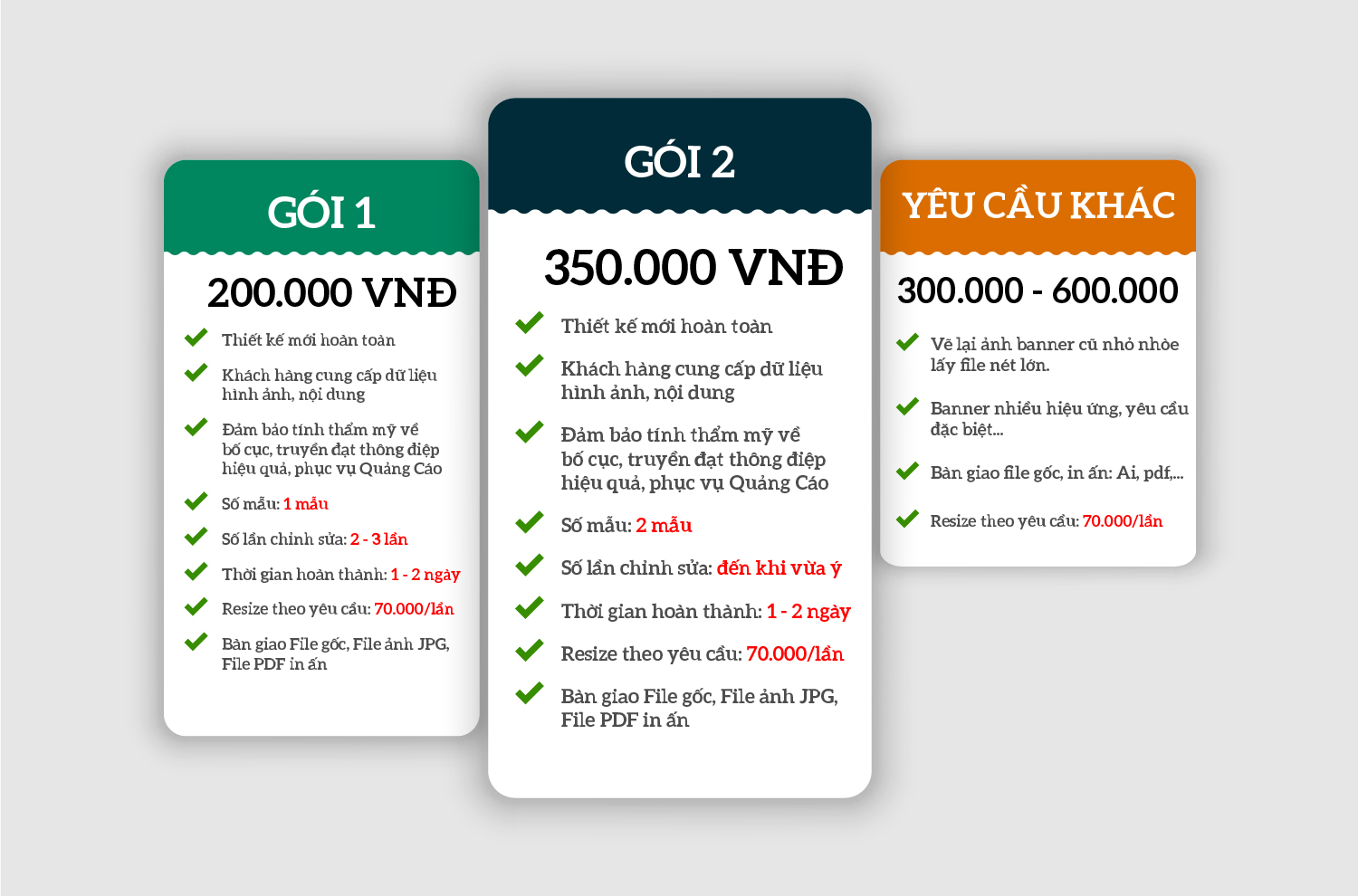 - Phụ thuộc vào dịch vụ: Mỗi dịch vụ thiết kế banner có quy định riêng về giá cả và phương thức tính toán. Một số dịch vụ sẽ tính giá theo kích thước, định dạng và số lượng banner, trong khi các dịch vụ khác có bảng giá cố định hoặc tính theo giờ làm việc.