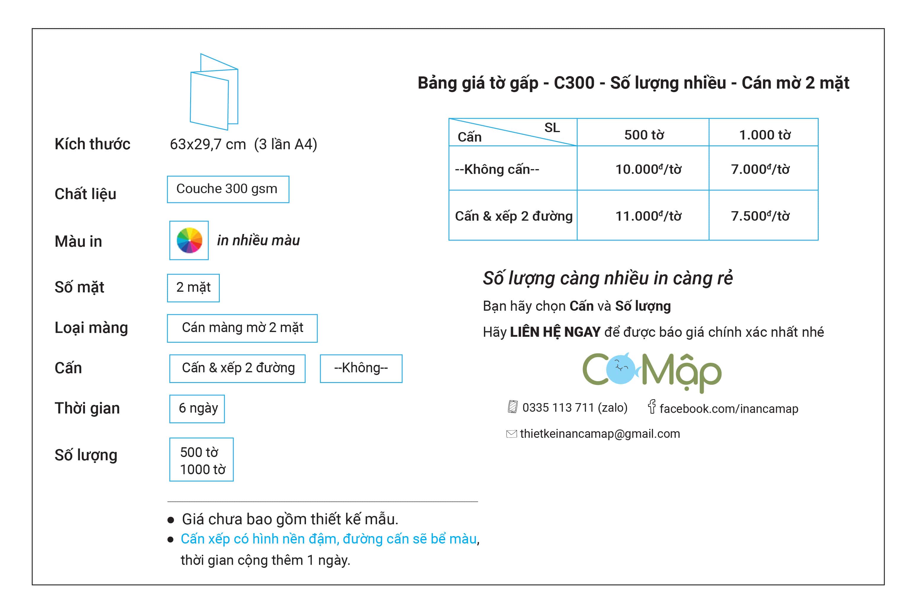 • Hỗ trợ các thiết kế và tư vấn tờ gấp C300 giá rẻ theo yêu cầu.