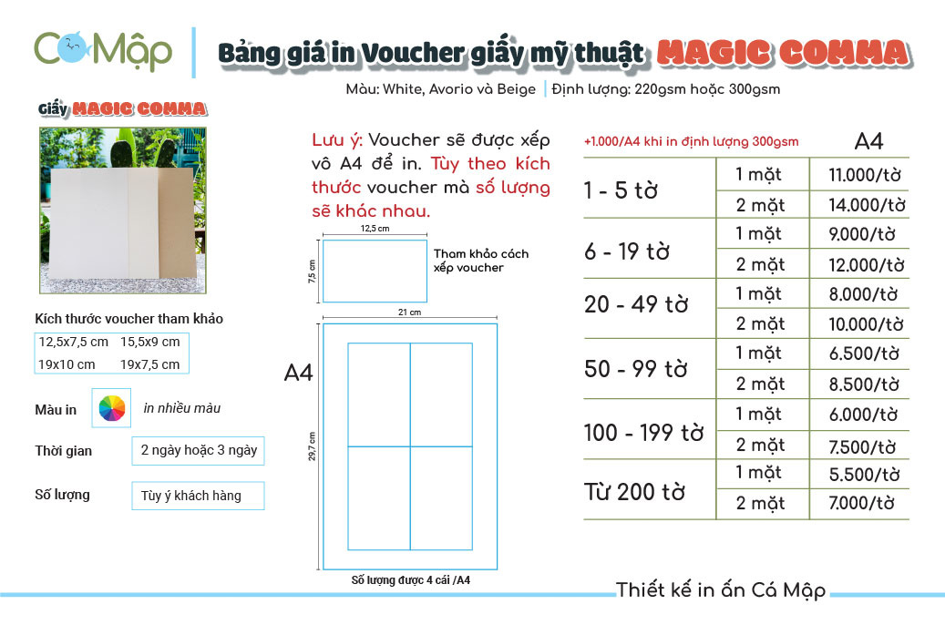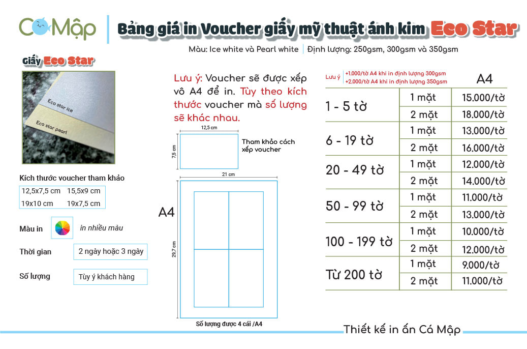 Bảng giá dịch vụ in voucher trên giấy mỹ thuật