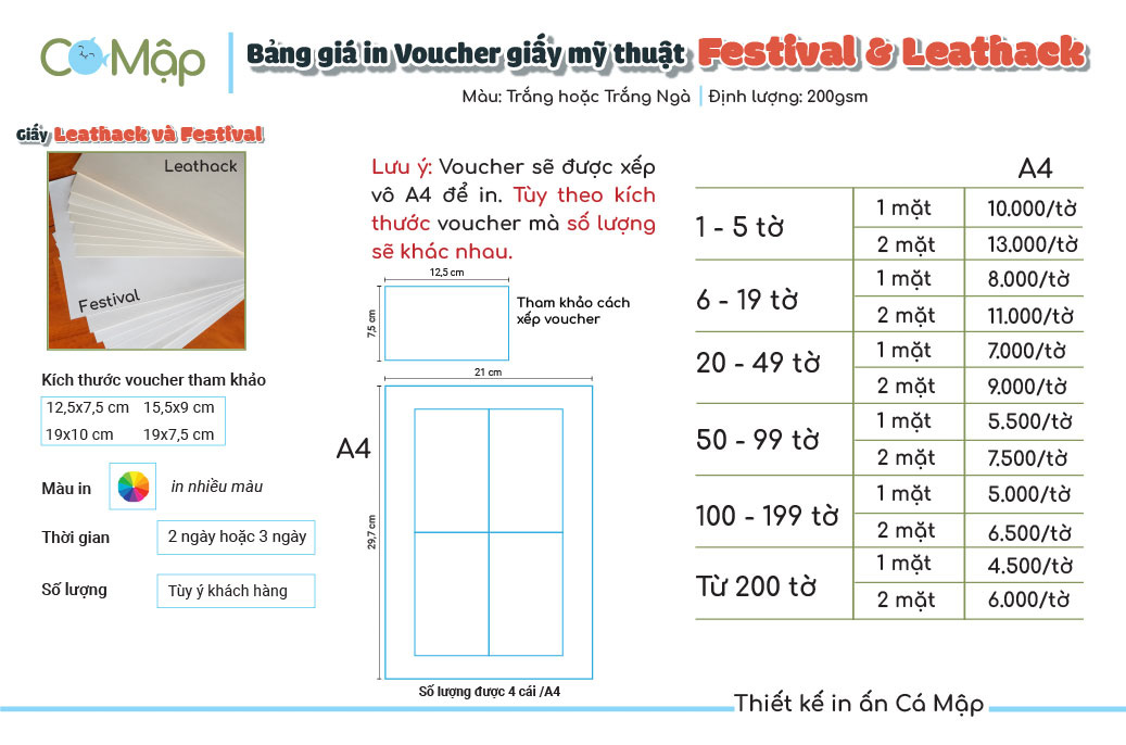 • Hỗ trợ các thiết kế và tư vấn in voucher trên giấy mỹ thuật theo yêu cầu.